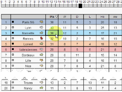 À Table! is an enhanced soccer ranking table to improve temporal navigation, by combining two novel interaction techniques. Ranking tables order soccer teams as rows, and columns contain e. g., their points or number of scored goals. Because they are a snapshot of a championship at a time t, they are constantly updated with new results. Such updates change the rows vertical order, which makes the tracking of a team, over time, difficult. We observed that current tables on the web do not support such changes very well, are generally hard to read, and lack dynamic interactions. This contrasts with the extensive use of temporal trends by soccer analysts in articles. We introduce two interactive techniques to better explore time: DRAG-CELL is based on direct manipulation of values to browse ranks; VIZ-RANK uses a transient line chart of team ranks to visually explore a championship. An on-line evaluation with 143 participants shows that each technique efficiently supports a set of temporal tasks, not supported by current ranking tables, while not breaking the flow of users. This paves the way for efficiently introducing advanced visual exploration techniques to millions of soccer enthusiasts who use tables everyday, as well as other application domains which use ranking tables.
