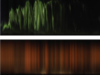 The Aurora Borealis or Northern Lights is a phenomenon that has fascinated people throughout history. The AuroraMAX outreach initiative provides a collection of time-lapse videos of the night sky captured by a camera at Yellowknife in Canada. We have generated large-scale digital prints from a sequence of photographs of the northern sky taken over the course of one night. Each image is aggregated across time creating visually appealing and intriguing images – or Keograms – that visualize Aurora Borealis (Northern Lights) activity as well as interesting movements of clouds and stars that occurred that night.