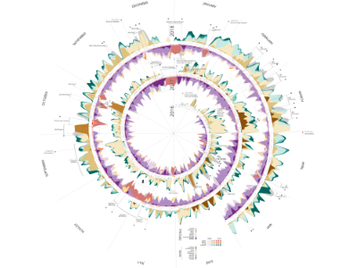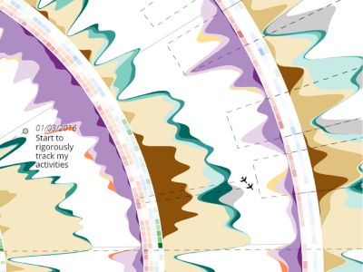 In this project, I explore the process of designing a relatable, aesthetically pleasing, intriguing visualization; a visualization that is as personal as the data it represents; and a visualization whose purpose is to support the telling of personal stories; from telling stories to a semi-private audience like colleagues at a conference to telling more intimate stories to close relatives who might have shared some moments of my life. The data I collected for this project consists of work-related data and personal data. The backbone of this visualization is the manual activities I logged for the past two years and a half. To log my activities, I used the Toggl application. The application consists of a simple timer that makes it possible to record activities in real time activities and to associate to each activity a description and a category.