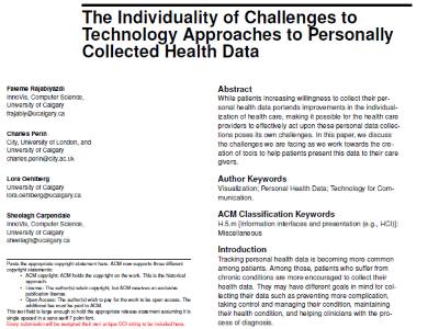 Proceedings of the CHI Workshop: WISH (Workshop on Interactive Systems in Healthcare), May 2016, San Jose, CA, USA. ACM